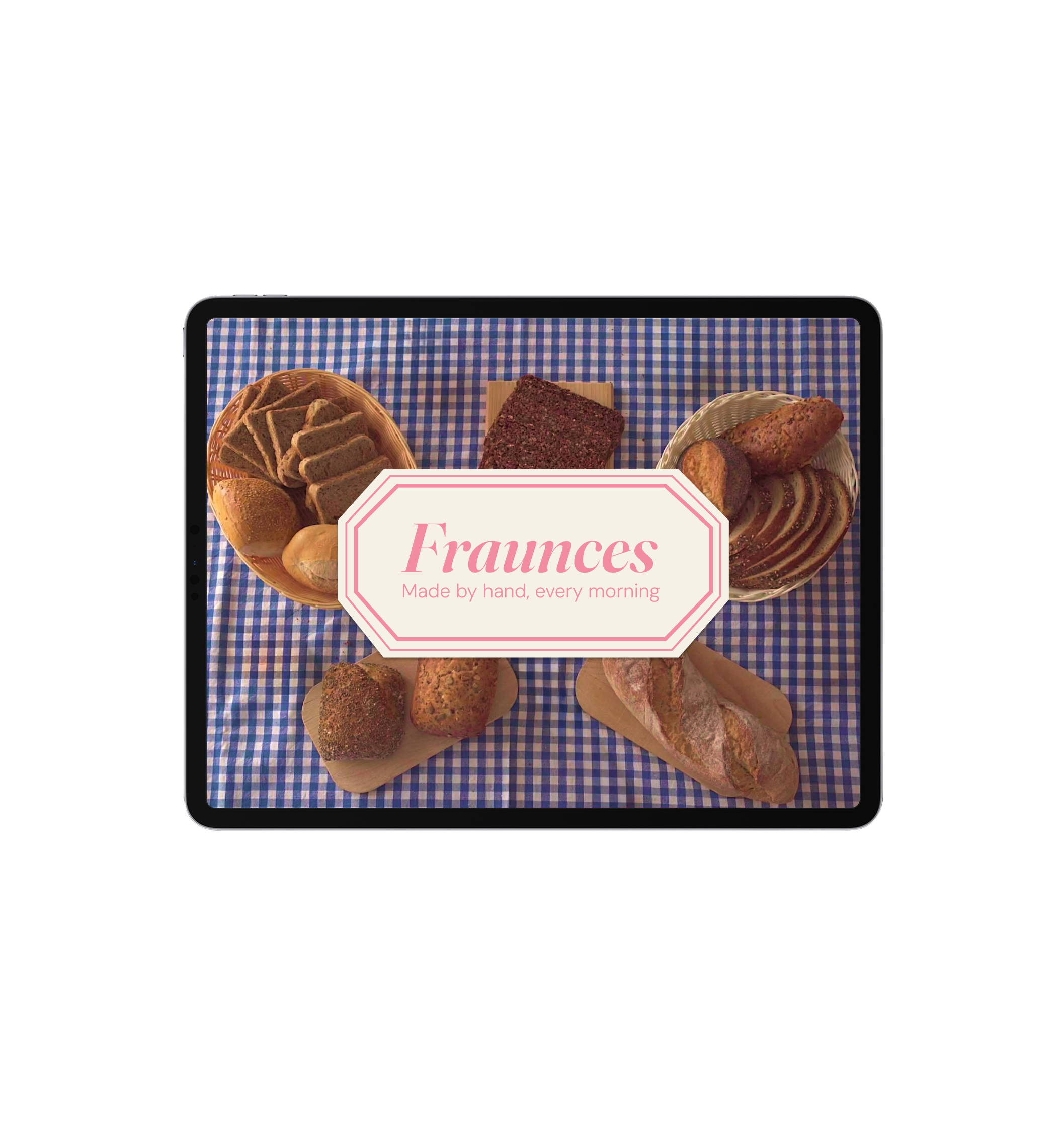 Fraunces is imagined as a small, local bakery with a strong sense of place and seasonality. The design focuses on inclusivity - not just in terms of accessibility, but in creating something that feels warm and approachable to a broad audience.